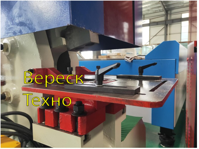 - Пробивка: доступен полный спектр универсальных пробивных штампов. Конструкция позволяет выполнять штамповку железа под большим углом и пробивать большие отверстия. Для простоты эксплуатации используется откидная конструкции съемника, большой стол с линейками и упором; стандартные фитинги; быстрая смена стяжной гайки и втулки для быстрой смены.