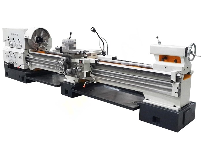 Токарно-трубонарезные станки используется для нарезания резьбы на трубах с большим диаметром, шпиндель оснащён двойным токарным патроном (3-кулачковый патрон или 4-кулачковый патрон) с обеих сторон для зажима длинных труб.
